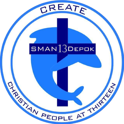 Lambang ROHKRIS SMA Negeri 13 Depok adalah lumba-lumba yang mengitari lambang salib.